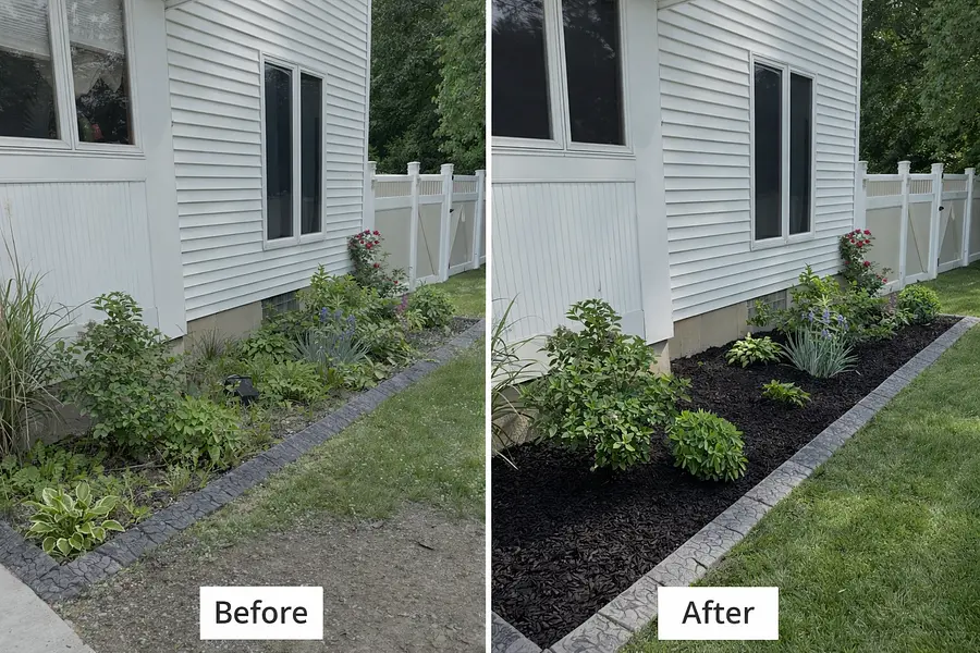 Clean bed edges, weed removal, and fresh mulch installation for residential and commercial properties throughout Buffalo, Kenmore, Tonawanda, and Amherst.
